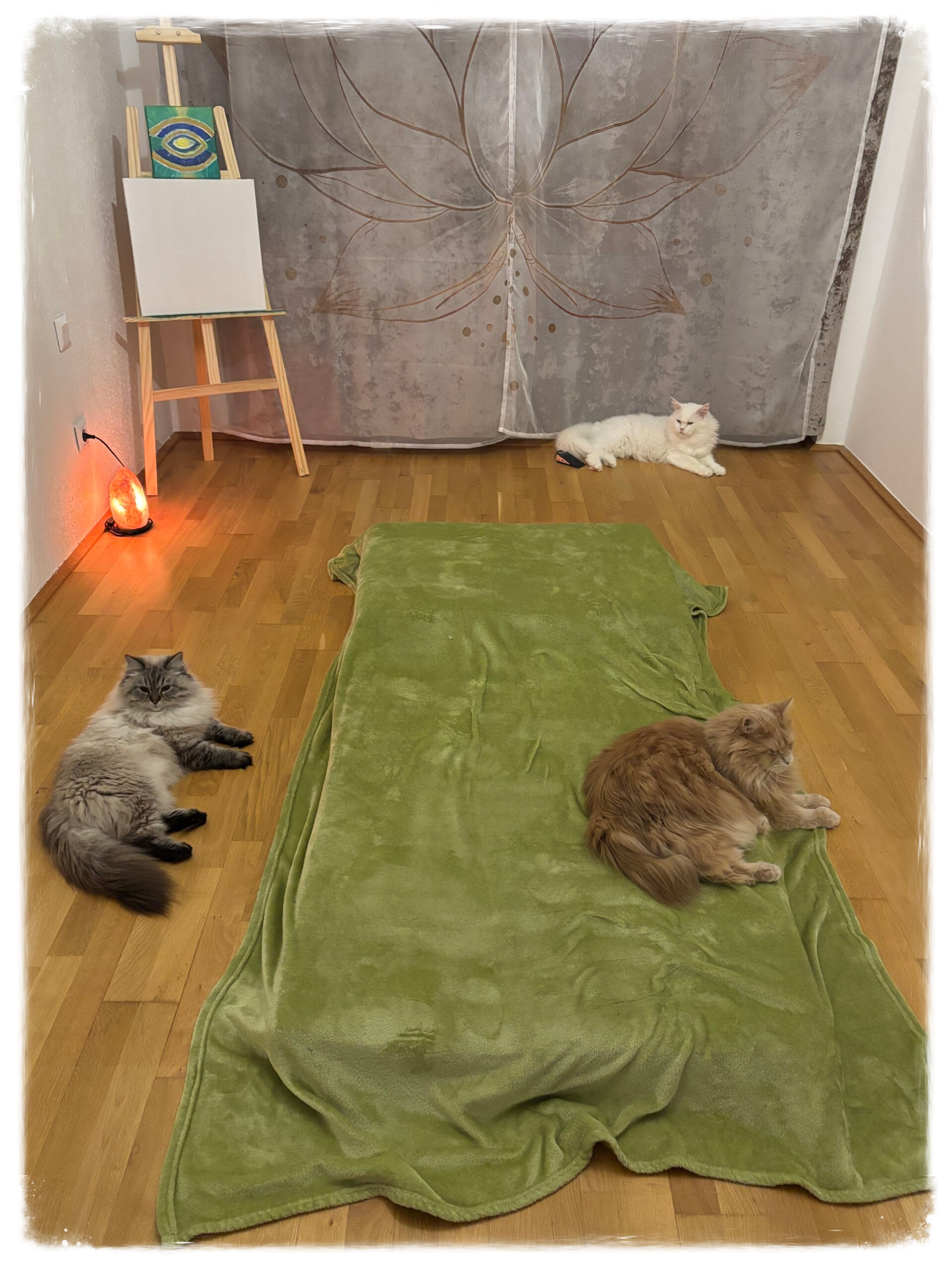 meine spirituelle Arbeit findet in einem geschützten, liebevollen Rahmen in meiner Wohnung statt. Drei Katzen leben hier mit mir und bereichern das energetische Feld mit ihrer ruhigen, feinen Präsenz.